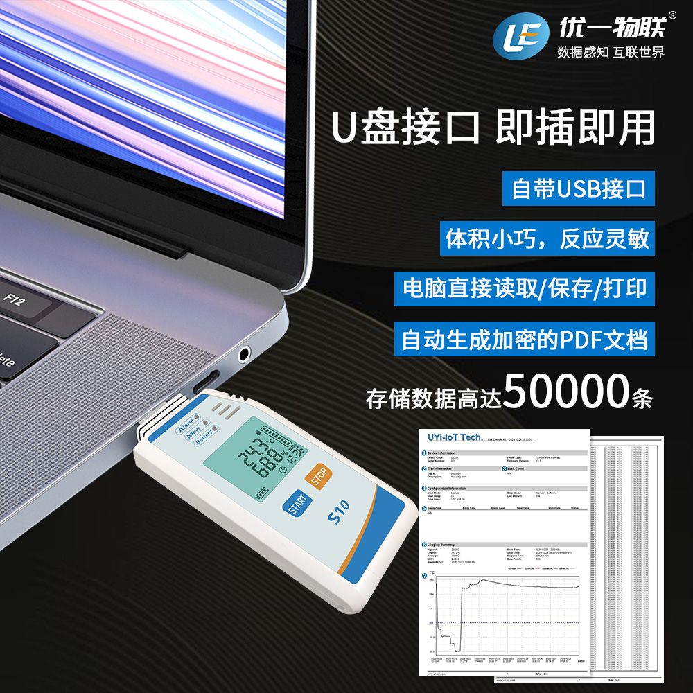 U1-S10是一款應(yīng)用于生物醫(yī)藥箱,集裝箱,冷藏車,倉庫,驗證等場景的PDF溫濕度記錄儀,大屏LCD顯示,高精度,大容量,生成報告表速度快,操作便捷,常用于食品藥品或其它溫度敏感貨物的冷鏈運輸,倉庫等環(huán)境監(jiān)測,驗證設(shè)備。