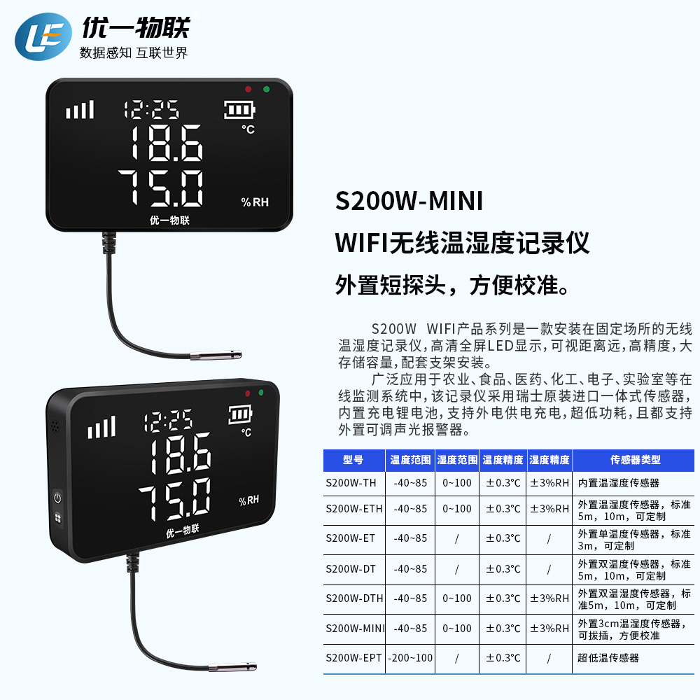 S200W-MINI WIFI無線短探頭溫濕度記錄儀